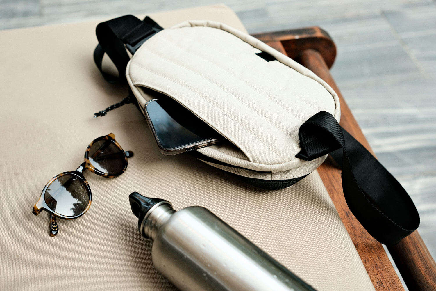 Phone, keys, wallet – plus a few other essentials. Wear the 3L as a sling or a belt bag; or remove the strap entirely to use it as a tech or toiletry pouch. There’s just enough room for everything you need while on-the-go, without slowing you down.